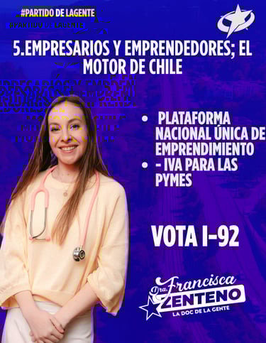 - Creación de una Plataforma Nacional Única de Emprendimiento, donde se pueda formalizar, registrar marca, iniciar actividades, acceder a financiamiento y capacitarse en menos de 48 horas.