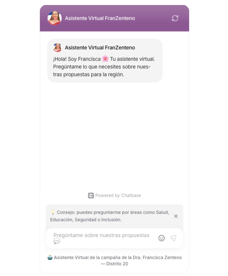 Pregúntale a la Asistente Virtual sobre nuestras propuestas para el Distrito 20